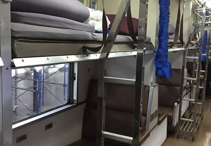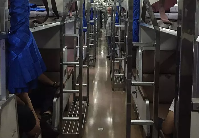 De treinen zijn schoon en comfortabel. De ligplaatsen bevinden zich niet in een coupé zoals bij ons, maar in afgeschermde secties. Als u wilt slapen, komt de conducteur langs om uw stoel te veranderen in een ligplaats en het gordijn te sluiten, voor uw privacy. Alle ligplaatsen worden opgemaakt met hoeslaken, kussensloop en een schone katoenen deken. Bij uw ligplaats is plaats voor bagage.