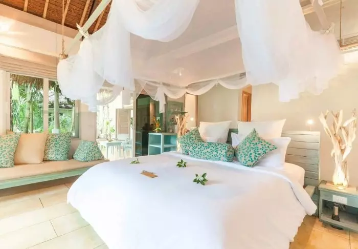 Het onderkomen van Santhiya is ronduit fantastisch. Elke kamer en elke villa heeft zijn eigen unieke charme en verfijnde details. De meeste kamers hebben een adembenemend uitzicht over de baai en de zee en sommige hebben zelfs een privé-zwembad. Dit vormt het perfecte decor voor een romantische vakantie of een ontspannen vakantie met het hele gezin. Alle kamers zijn prachtig ingericht met authentieke houtsnijwerkdetails en moderne gemakken zoals airco, wifi, tv met tv-lift, minibar en kluisje. Boven het bed hangt een klamboe. De mooie badkamer is voorzien van een föhn, gratis toiletartikelen, badjassen en slippers. ‘s Ochtends kunt u de dag beginnen met een kopje koffie op uw ruime balkon, dat is voorzien van een ligbed en een plafondventilator.