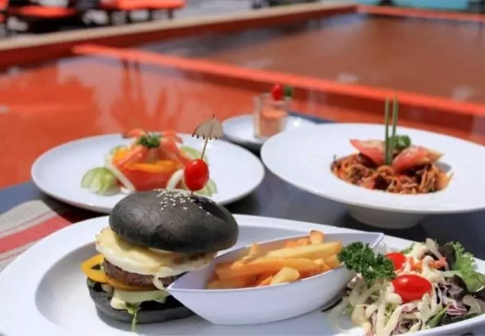 Er is ook een café en restaurant waar zowel internationale als Thaise gerechten worden geserveerd.
