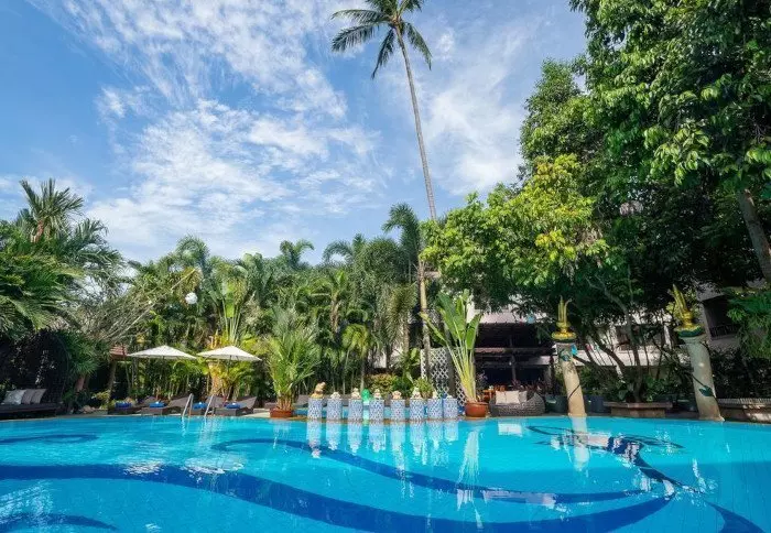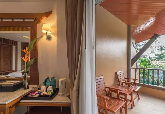 Het resort heeft 50 ruime kamers, die traditioneel zijn ingericht. Alle kamers zijn voorzien van gratis wifi, airconditioning, kluisje, minibar, thee- en koffiefaciliteiten, strijkbout en strijkplank, tv, telefoon, bureau, föhn en badkamer met ligbad en aparte douche. Vanaf het balkon is er uitzicht op de tropische tuin.