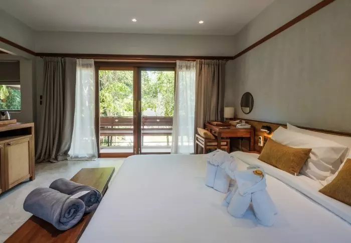 De 74 kamers van het Banana Fan Sea Resort zijn ruim (minimaal 33 m2) en ingericht in een super modern, rustiek en stijlvol design, dat optimaal comfort biedt. Alle kamers zijn voorzien van wifi, airco, tv, minibar, kluisje, koffie- en theefaciliteiten en een ruime badkamer met badjassen, föhn en diverse gratis toiletartikelen. Begin uw ochtend met een kopje thee of koffie op uw terras en geniet van de stilte en de tropische omgeving.