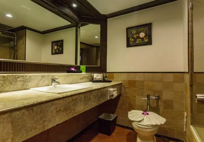 Het resort beschikt over 275 kamers met een moderne Thaise stijl en lichte, ingetogen kleuren. Alle kamers hebben een balkon en zijn voorzien van wifi, een tv, airconditioning, een minibar, een bureau en een kleine zithoek. De badkamer is voorzien van een regendouche, föhn, badjassen en badslippers.