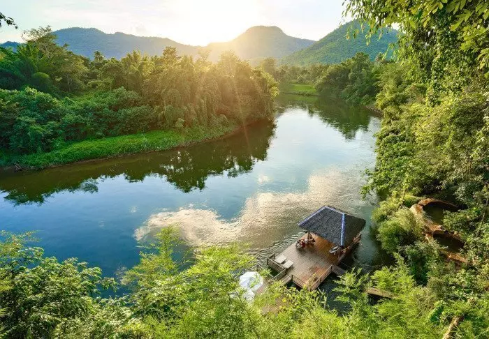 De ligging van Hintok River Camp is een van de mooiste en meest idyllische van Thailand met uitzicht op de historische Kwai rivier.