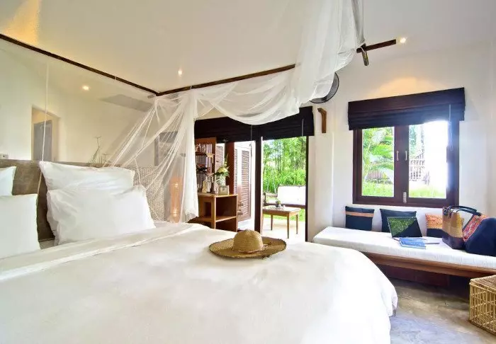 Er zijn in totaal 76 kamers van min. 56 m2 en ze zijn allemaal eenvoudig en licht ingericht. Alle kamers zijn voorzien van wifi, airconditioning, bedden met muggennetten, flesjes mineraalwater, minibar, thee- en koffiefaciliteiten, kluisje, tv, telefoon en bureau, en in de badkamer vindt u badjassen, badslippers, föhn en toiletartikelen. ‘s Ochtends kunt u genieten van een kopje koffie op uw eigen terras en genieten van de rustige omgeving.