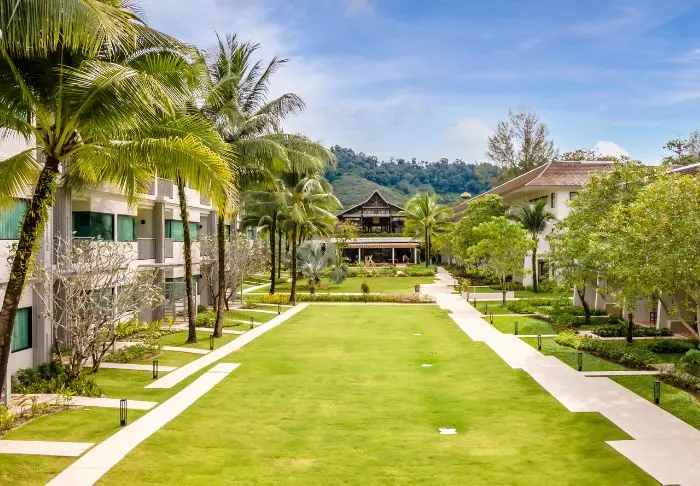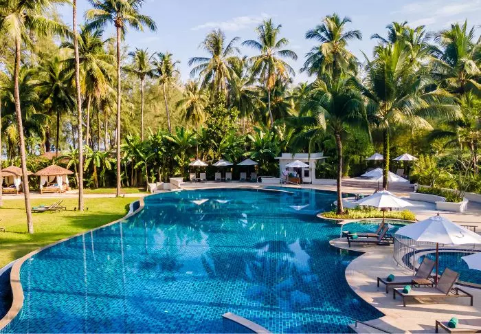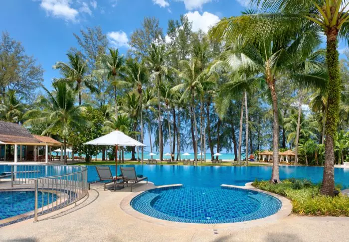 Voor de weelderige bergen en tussen de wuivende kokospalmen vindt u Outrigger Khao Lak Beach Resort, direct gelegen aan het strand van Bangsak met uitzicht op de Andamanse Zee.