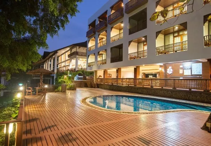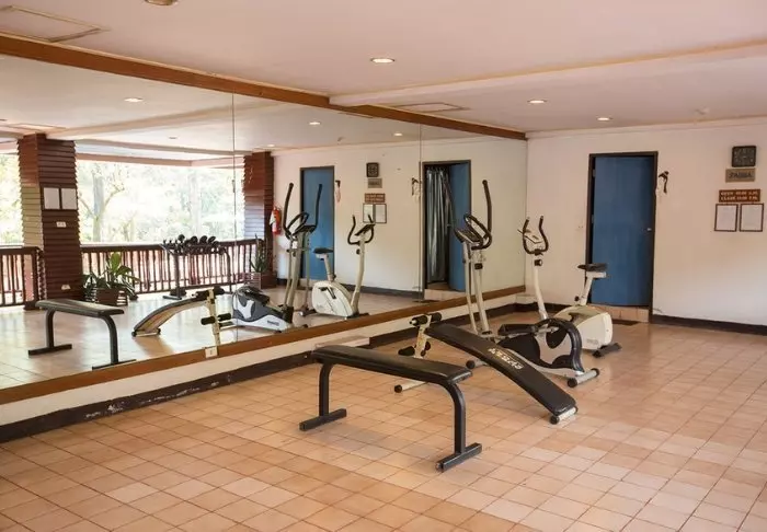 Het resort biedt ook een scala aan faciliteiten voor een complete vakantie-ervaring. Na een dag verkennen kun je een duik nemen in het grote buitenzwembad, dat wordt omringd door tropische bomen en planten, en als je fit wilt blijven tijdens je rondreis, heeft het resort ook een kleine fitnessruimte.