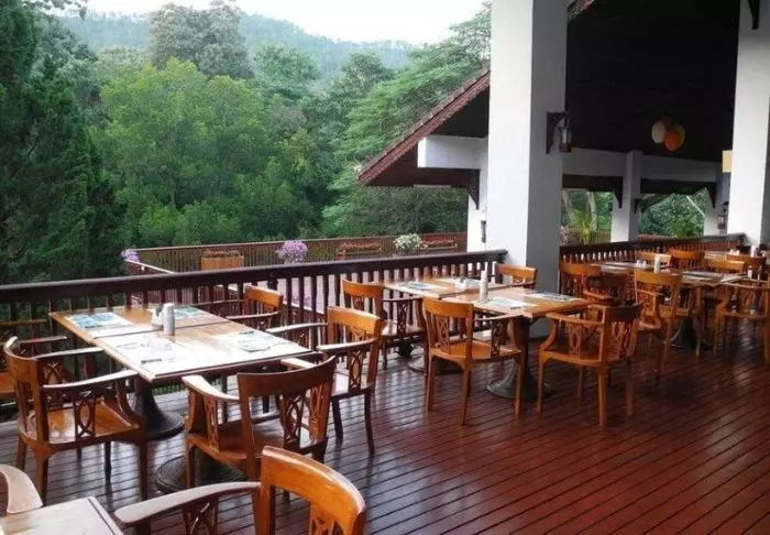 Het restaurant, Golden Teak, heeft een goede selectie Noord-Thaise specialiteiten en internationale gerechten, waar je zowel binnen als buiten van kunt genieten, perfect voor een avond in een prachtige omgeving.