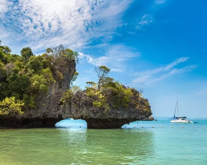 Eerst bezoekt u Hong Island, dat tussen Krabi en de Koh Yao-eilanden ligt. Hong Island maakt deel uit van het Than Bok Khorani National Park en staat bekend om zijn adembenemende schoonheid. Hong Island bestaat uit twee schilderachtige stranden met fijn, wit zand en kristalhelder water en is omringd door dramatische kalksteenrotsen. De rest van het eiland is bedekt met weelderige jungle, waar verschillende soorten planten en dieren goed gedijen.