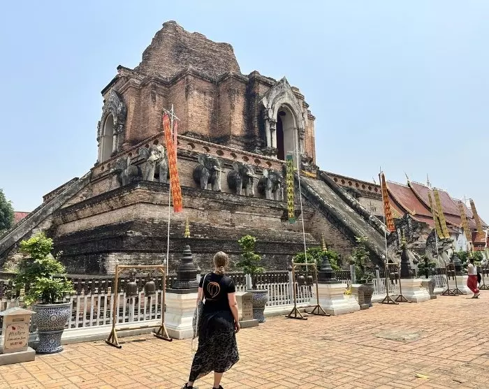 Je fietst door de rustige, smalle straatjes van Chiang Mai naar de prachtige Wat Inthakhin Sadue Mueang-tempel, beroemd om het 700 jaar oude Witte Boeddhabeeld. De fietstocht gaat verder langs het Drie Koningen Monument naar de Tha Phae Poort, waar handelaren ooit hun waren brachten tijdens de bloeitijd van de stad. Hier zal je gids je vertellen over de vroegere rol van Chiang Mai als handelscentrum. Vervolgens ga je naar de nabijgelegen Somphet Markt, waar je de lokale sfeer kunt opsnuiven en kleurrijk fruit en zoete lekkernijen kunt proeven. Daarna bezoek je Chiang Mai’s oudste tempel, Wat Chiang Man, met een 1.800 jaar oude kristallen Boeddha en een 2.500 jaar oude marmeren Boeddha. Ten slotte bezoek je het grootste monument van de stad: het iconische Wat Chedi Luang, dat ooit de thuisbasis was van de Smaragden Boeddha die nu in de Wat Phra Kaew-tempel in Bangkok staat.