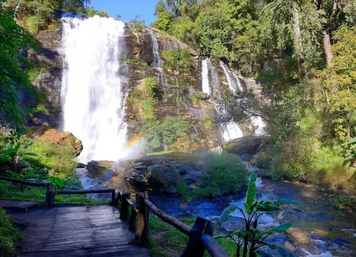 De laatste stop is bij de 40 meter hoge bruisende waterval Wachiratharm, een van de meest indrukwekkende watervallen van dit nationale park.