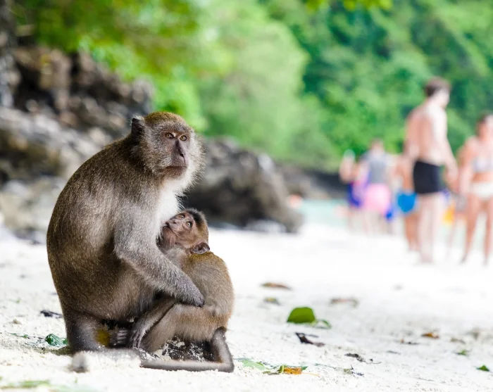 De reis gaat verder langs de Viking Cave richting Monkey Beach (Ao Ling) aan de westkant van Phi Phi Don, het grootste eiland van de Phi Phi-archipel. Het strand dankt zijn naam aan de wilde apen die hier leven op het witte poederzand. Deze ondeugende aapjes zijn dol op nieuwsgierige bezoekers en kunnen proberen uw spullen te grijpen. Laat kostbare bezittingen daarom aan boord of berg ze goed op. Op Phi Phi Don kunt u kiezen voor een wandeling naar het beroemde uitkijkpunt, dwalen door het levendige Phi Phi Don Village, of gewoon heerlijk ontspannen op het strand.