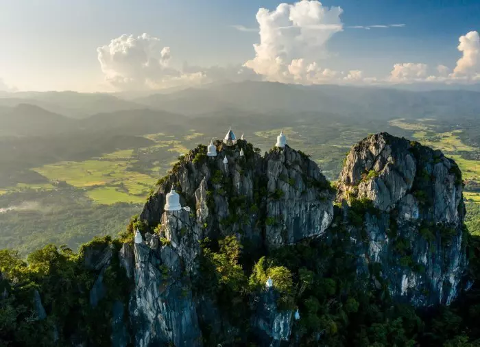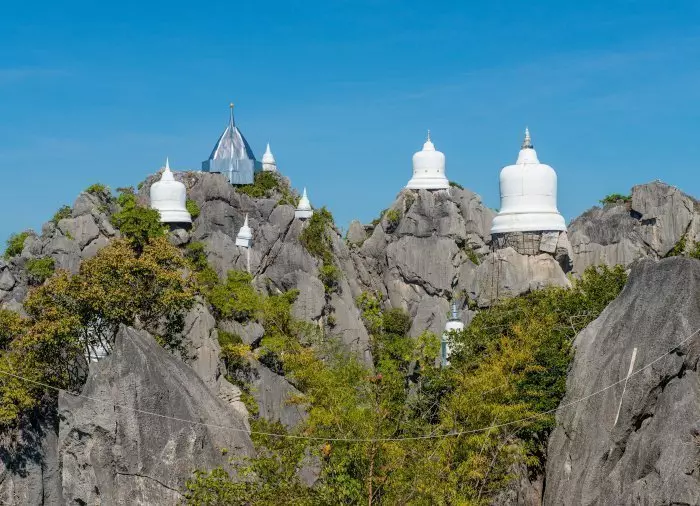 U komt aan bij een parkeerplaats, vanwaar een pendelbus u het laatste stuk de berg op brengt. Hier leiden 500 treden naar de top van een van de meest adembenemende uitkijkpunten van Thailand. Het is een behoorlijke klim, maar als u eenmaal op de top staat, wordt u beloond met een prachtig panoramisch uitzicht over de dorpen, de Thung Thung-vallei en niet te vergeten de witte pagodes op de hoge bergtoppen – een werkelijk prachtig gezicht! De gids vertelt u het verhaal van dit religieuze kunstwerk, dat maar een paar jaar oud is, en u heeft genoeg tijd om te genieten en deze indrukwekkende plek te bewonderen.