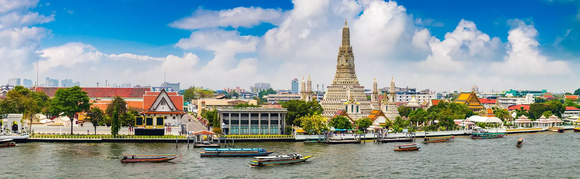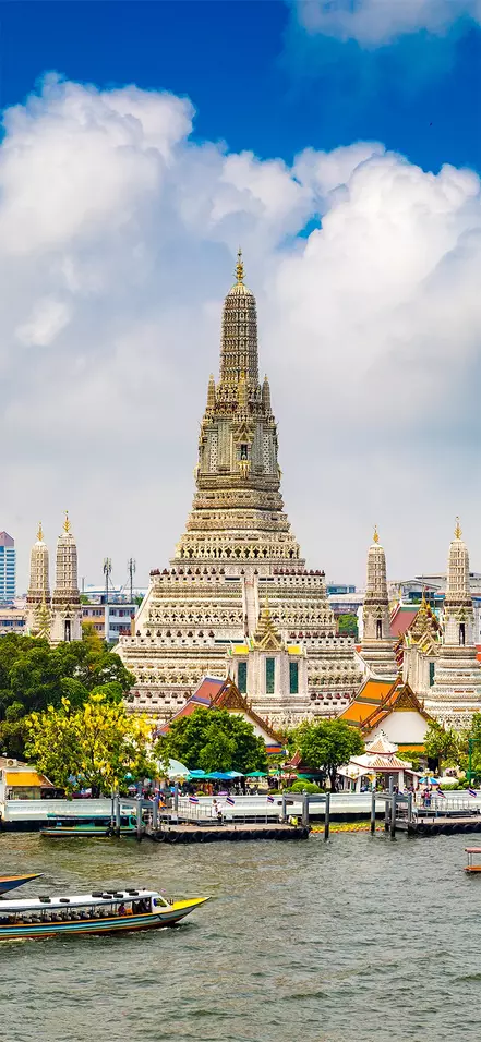 Bangkok wordt in tweeën gedeeld door de 372 km lange Chao Phraya-rivier. Het oostelijke deel van de stad wordt beschouwd als het centrale Bangkok. Hier vind je populaire gebieden zoals Sukhumvit, Silom en Chinatown, waar een hoge concentratie aan winkelcentra, lokale markten en uitstekende eetgelegenheden te vinden is. Aan deze oostkant ontdek je ook het historische deel van Bangkok, waar de koninklijke residentie van de stad, het Grand Palace, en de Tempel van de Smaragden Boeddha, Wat Phra Kaew, zich bevinden.
