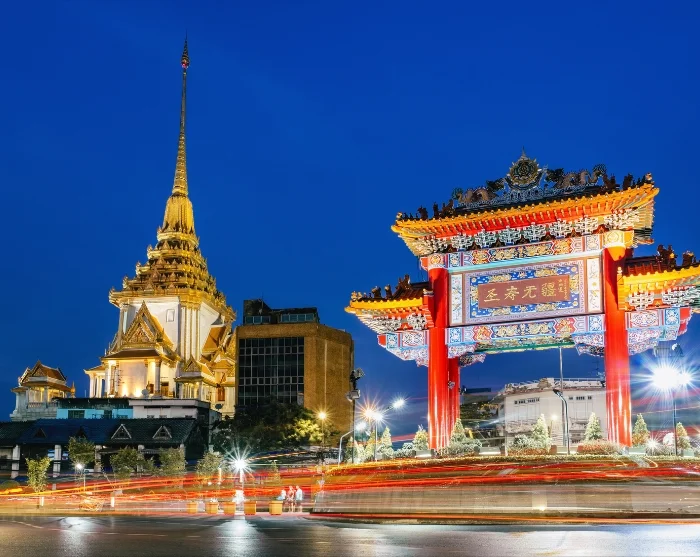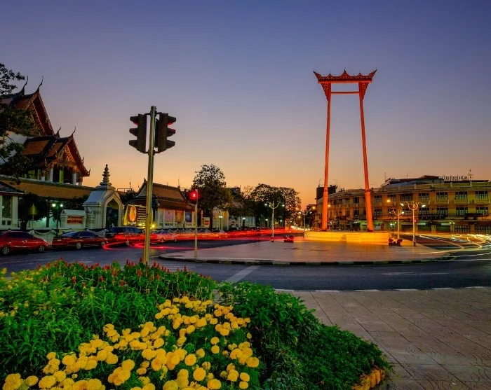 Daarna stapt u weer in een tuk-tuk en sjeest u door Chinatown, waar neonlichten en levendige straten een werkelijk unieke sfeer creëren. Er wordt een korte stop gemaakt bij de 27 meter hoge Giant Swing, een historisch en cultureel herkenningspunt bij de tempel Wat Suthat Thepwararam, schitterend verlicht in de avond en perfect voor een foto.