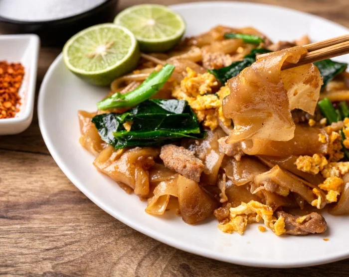 Het diner wordt geserveerd in een lokaal restaurant dat al meer dan 40 jaar Pad See Ew bereidt. Deze populaire noedelschotel is een prachtig voorbeeld van hoe Chinese culinaire tradities de levendige Thaise streetfoodcultuur hebben gevormd.