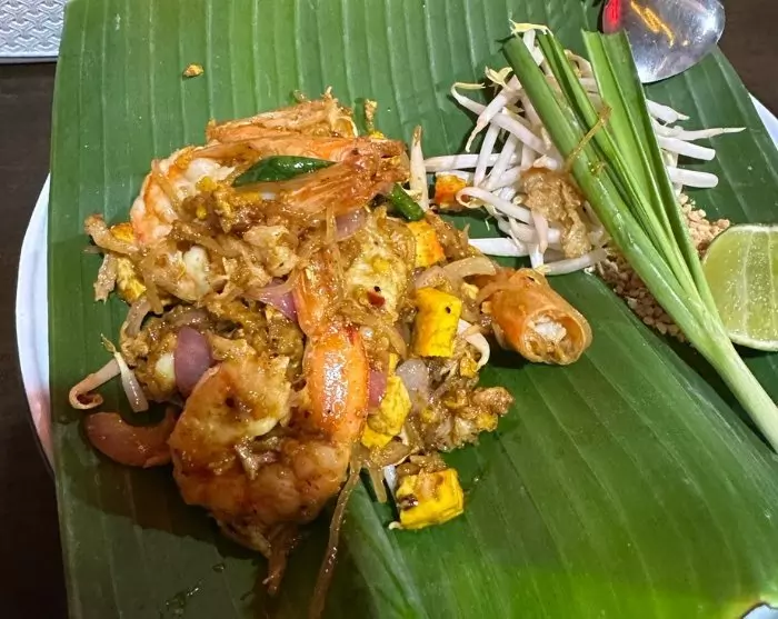 Het diner wordt geserveerd in een lokaal restaurant dat al meer dan 40 jaar Pad See Ew bereidt. Deze populaire noedelschotel is een prachtig voorbeeld van hoe Chinese culinaire tradities de levendige Thaise streetfoodcultuur hebben gevormd.
