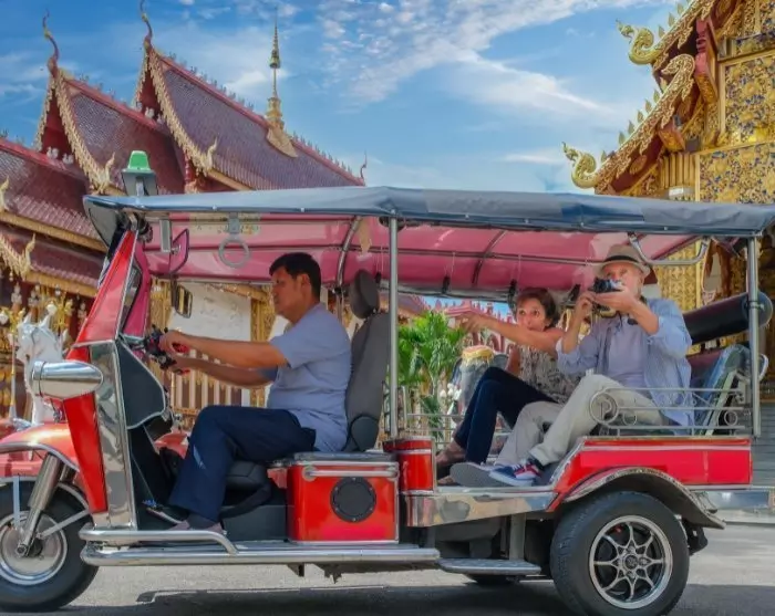 Bij het verkennen van Bangkok hoeft u zich geen zorgen te maken over het beruchte verkeer, want de stad biedt een breed scala aan vervoersmogelijkheden. Veel mensen gebruiken tuk-tuks of Grab, maar de rivier-taxi’s zijn ook populair en vormen een belangrijk onderdeel van het openbaar vervoer, met stops bij vele belangrijke attracties van de stad. Daarnaast is er de Sky Train, die zich tussen de wolkenkrabbers van de stad slingert en een goede, snelle en betaalbare manier biedt om zich te verplaatsen.
