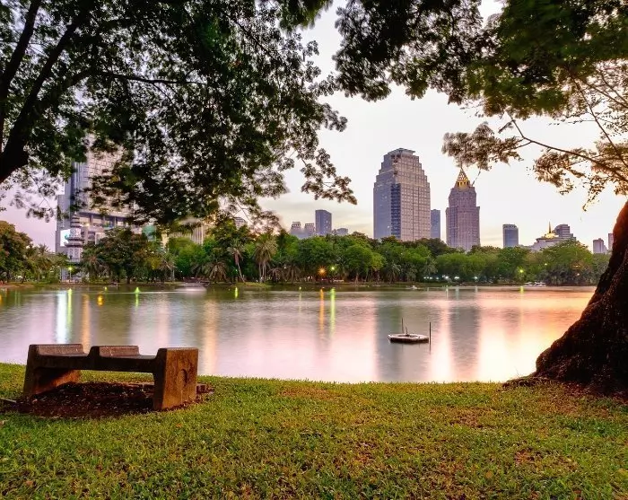Na een dag door het tropische, drukke Bangkok te hebben gewandeld, zijn er ongetwijfeld momenten waarop u droomt van groenere en rustigere plekken. Bezoek dan de Lumpini of Benjakiti parken. U kunt ook naar de westkant van de rivier gaan, waar u een totaal andere wereld zonder wolkenkrabbers en toeterende tuk-tuks ervaart. Hier vindt u traditioneel Bangkok en een doolhof van kanalen met paalwoningen en postbezorgers die varen met een boot.