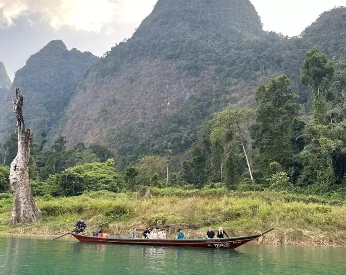 Vervolgens wordt u naar de Ratchabrapa-pier nabij de indrukwekkende dam gereden. Hier stapt u aan boord van een longtailboot en vaart u naar Cheow Lan meer, waar het majestueuze landschap met iconische kalkstenen kliffen wacht.