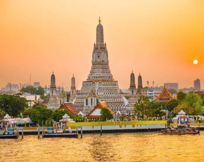 De avond eindigt met een schilderachtige rit langs het Grand Palace en de City Pillar, waarna u aankomt aan de rivier, tegenover Wat Arun. De tempel is prachtig verlicht aan de overzijde van de Chao Phraya-rivier en vormt een schitterend decor voor de laatste stop van de reis.