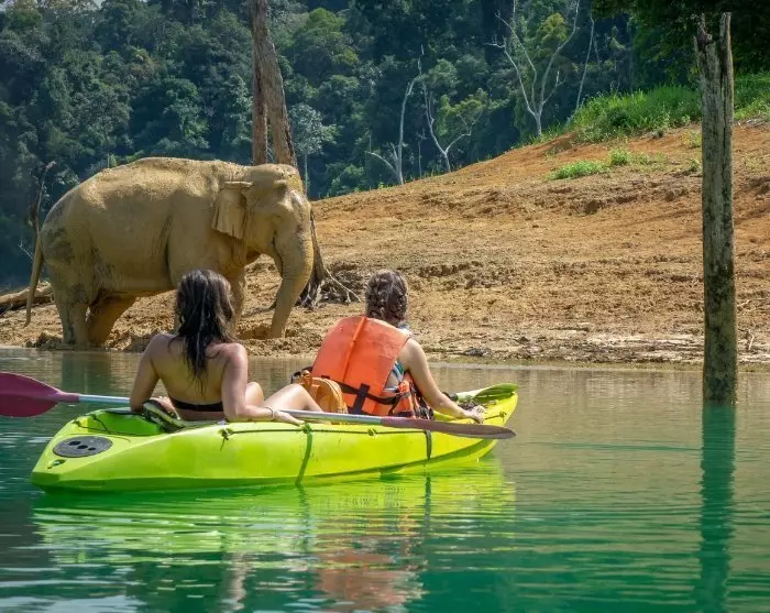 De rit van de luchthaven van Surat Thani naar uw hotel duurt ongeveer 1 uur en 40 minuten. Na aankomst bij uw accommodatie maakt u een ontspannen kanotocht over de Sok-rivier. Het is een heerlijk avontuur: geruisloos glijdt u over het water, terwijl u geniet van de geuren en geluiden van het omringende regenwoud. U kijkt uit op indrukwekkende kalksteenkliffen en weelderige groene natuur. Luister naar de vogels hoog in de boomtoppen en let goed op langs de oevers—met een beetje geluk ziet u wellicht een grote varaan. Het mooiste is dat u volledig kunt ontspannen terwijl uw lokale gids het peddelwerk doet.