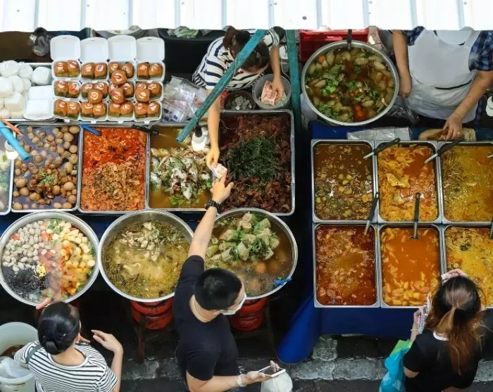 In de aankomsthal van het treinstation wordt u opgewacht door een gids met een TourCompass-bordje, die u naar de populaire Talad Warorot mark brengt, waar het ontbijt wordt geserveerd.