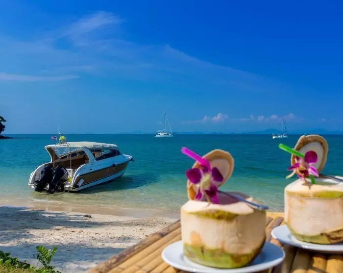 U wordt opgehaald bij uw hotel en naar de pier gebracht, waar een traditionele longtailboot wacht om u mee te nemen op de turquoise zee.