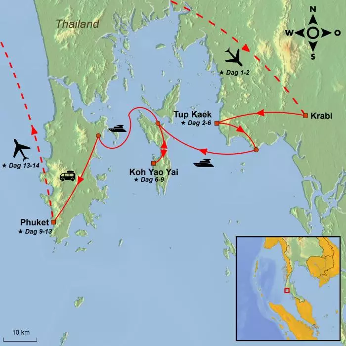 Van het dramatische landschap van Krabi tot het rustige paradijs van Koh Yao Yai en de kleurrijke sfeer van Phuket – de perfecte mix van avontuur, ontspanning en belevenissen.
