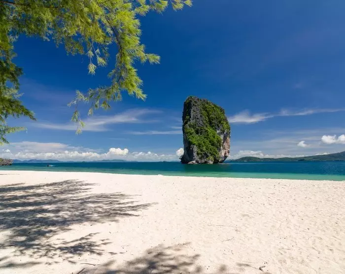 Na ongeveer 30 minuten komt u aan bij Koh Poda, een van de mooiste eilanden in de Andamanse Zee. Het eiland staat bekend om zijn ongerepte stranden met zacht wit zand dat overgaat in kristalhelder water. Hier kunt u snorkelen tussen tropische vissen, zwemmen of heerlijk zonnebaden. Als u wat rust wilt, zoek dan een schaduwrijk plekje onder een boom en geniet van het adembenemende uitzicht. Voor dat ‘Robinson Crusoe’ gevoel kunt u verder langs het strand wandelen om uw eigen stukje paradijs te vinden. Hoe verder u loopt, hoe meer u dat gevoel van een verlaten eiland krijgt.