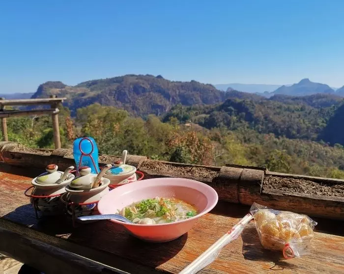 De reis gaat verder naar de iconische Sutongpe-brug. De indrukwekkende bamboebrug strekt zich uit over weelderige rijstvelden en verbindt een dorp met de boeddhistische tempel Wat Phu Sama. De Sutongpe-brug is een van de langste bamboebruggen van Thailand, ongeveer 500 meter lang. Hij werd gebouwd door lokale dorpelingen en monniken als symbool van samenwerking en geloof. De brug speelt nog steeds een rol in hun dagelijks leven, omdat de monniken hem dagelijks oversteken op hun aalmoezenrondes.