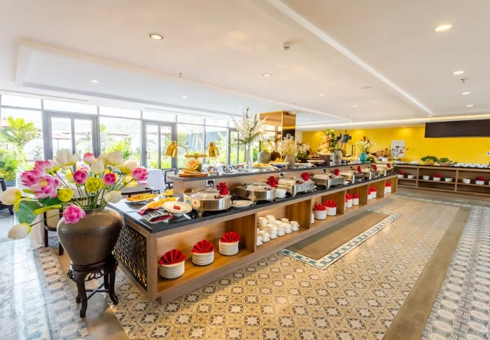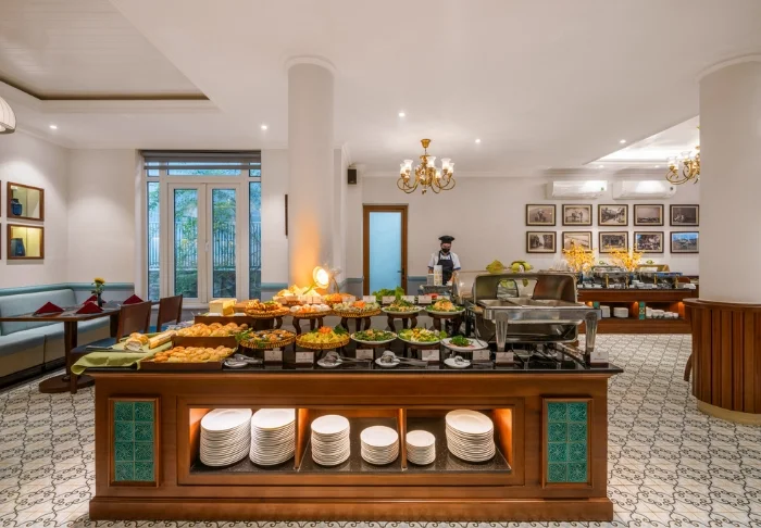 Het restaurant van het hotel serveert zowel Vietnamese als internationale gerechten. Het ontbijt is een uitgebreid buffet met vers fruit, huisgebakken brood en warme lekkernijen.