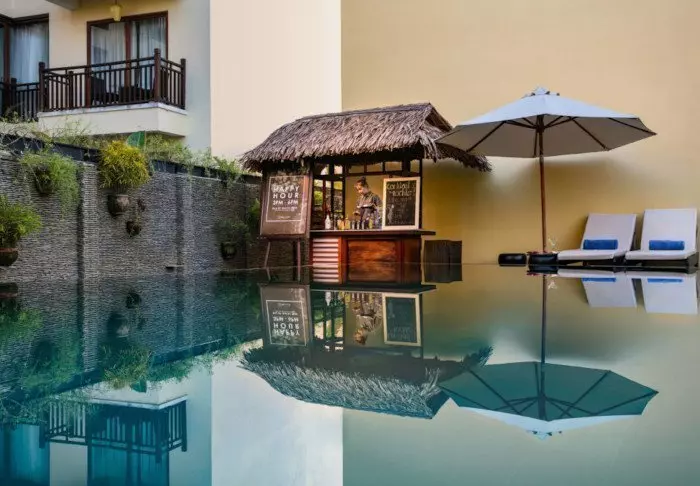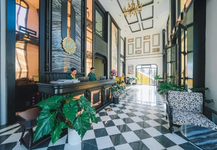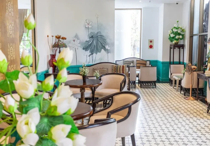 De bouw van dit unieke hotel is geïnspireerd op de koloniale stijl en als u de lobby binnenkomt, wordt u onmiddellijk teruggevoerd naar het oude Indochina. De stijl is romantisch en charmant met een moderne touch. Plaatselijke kunstenaars hebben 250 unieke olieverfschilderijen gemaakt die overal in het hotel de lichte muren sieren.