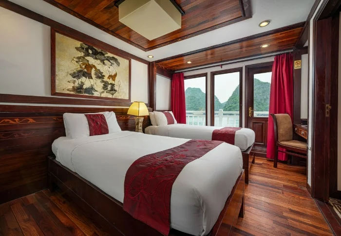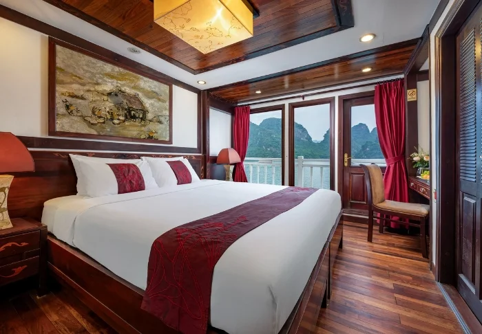 De Mila Cruise neemt u mee op avontuur tussen de spectaculaire landschappen van de Ha Long baai, waar kalkstenen kliffen majestueus oprijzen uit het smaragdgroene water. Aan boord van dit sfeervolle, 47 meter lange schip met 22 hutten, ervaart u direct de warme en uitnodigende sfeer.