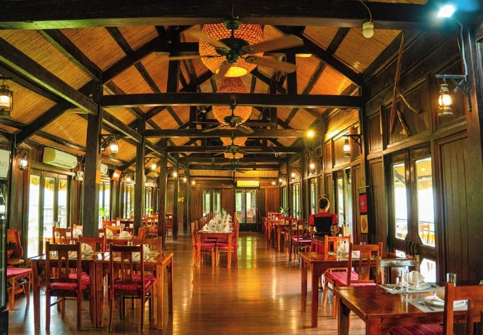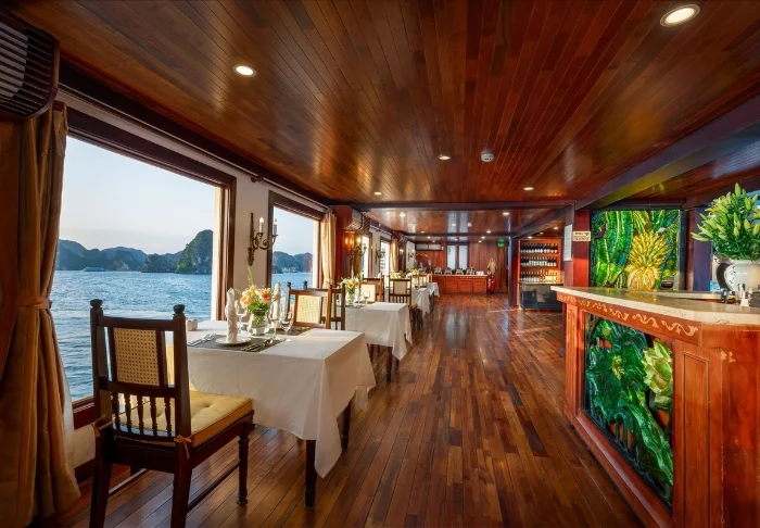In het restaurant aan boord geniet u van de Vietnamese keuken, bereid met lokale ingrediënten en verrijkt met exotische smaken. De maaltijden worden geserveerd in een sfeervol houten interieur, dat zorgt voor een romantische en intieme ambiance.
