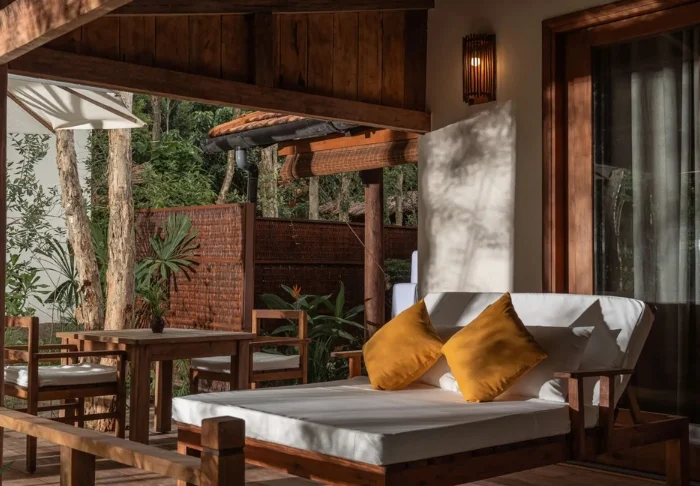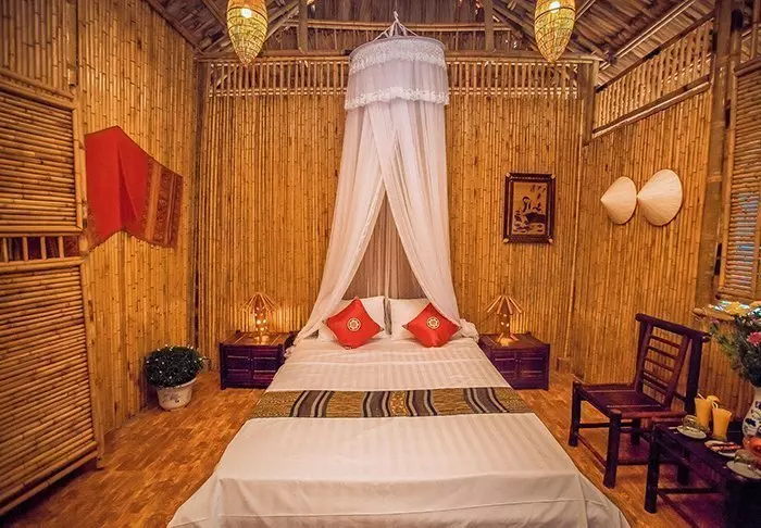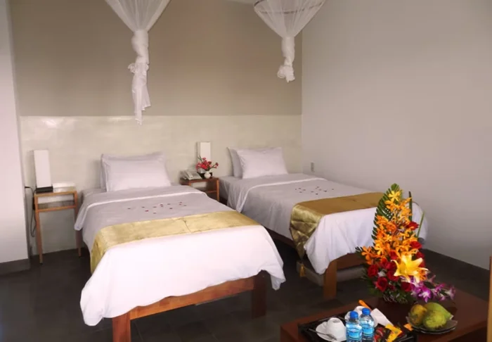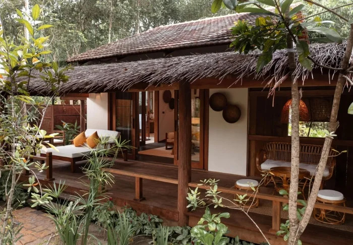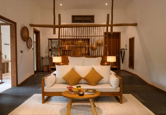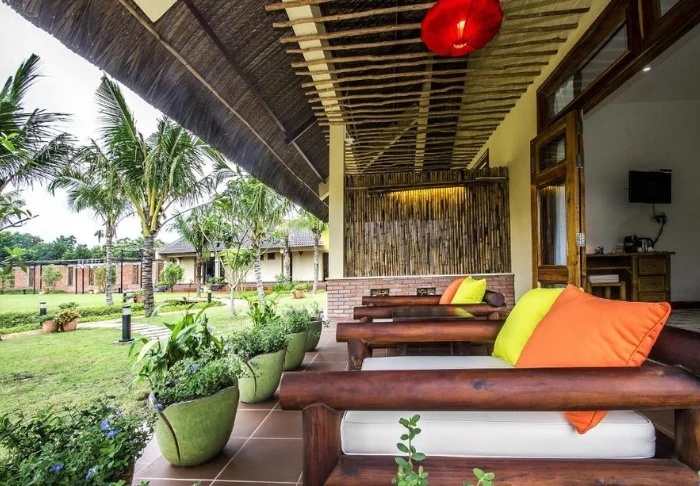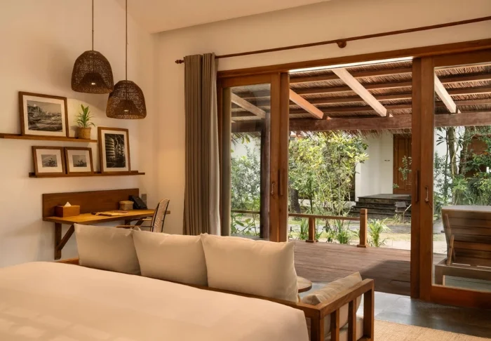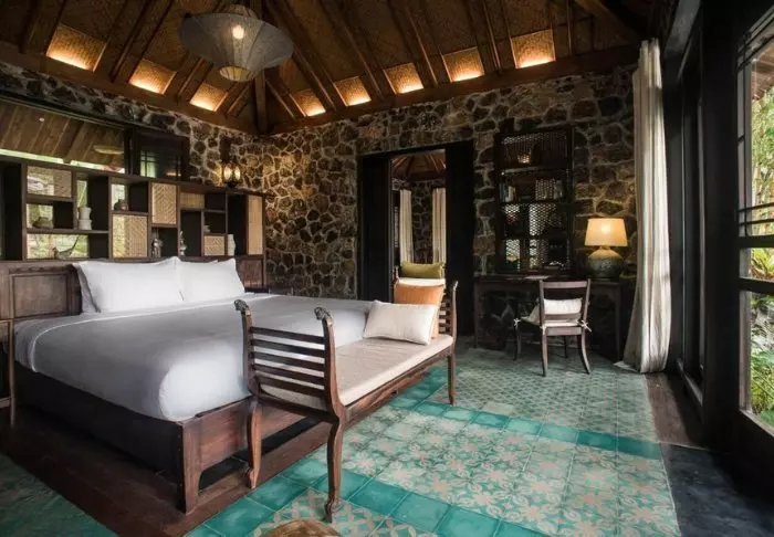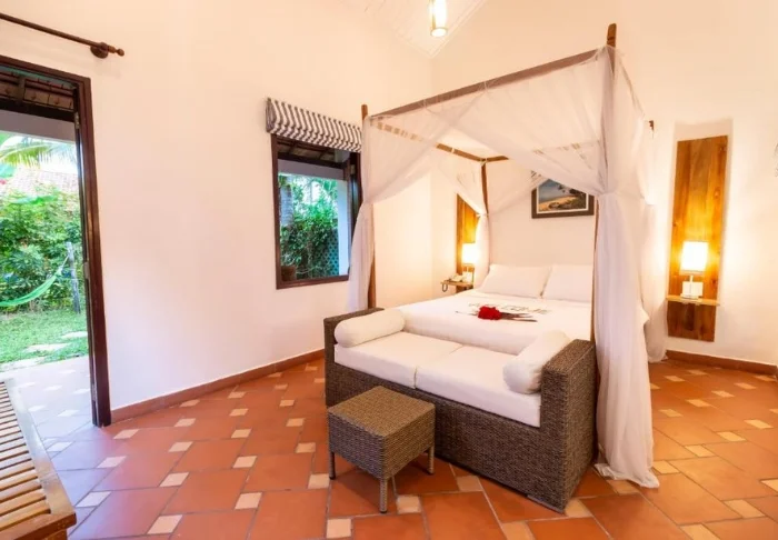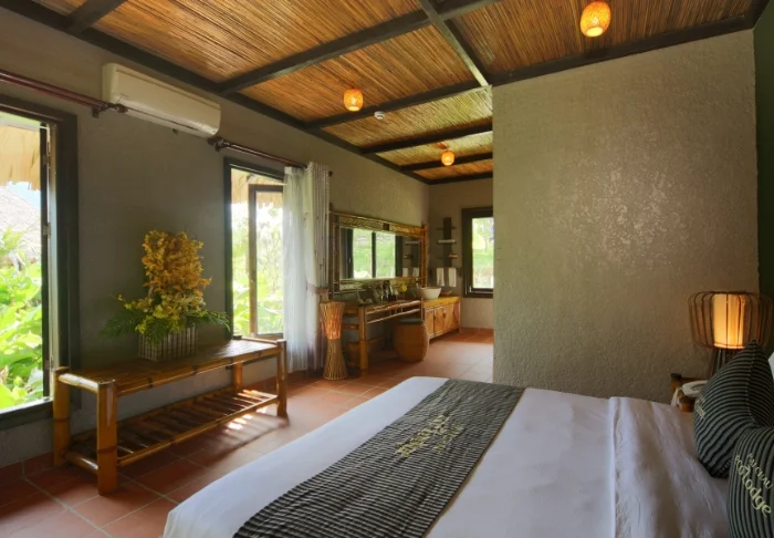 Er zijn 19 bungalows. Deze bestaan elk uit twee luxueuze, ruime kamers, die elk een eigen badkamer en terras met uitzicht over de tuin hebben. De kamers zijn smaakvol ingericht met lokale houtsoorten, steen, keramiek en tegels met traditioneel patroon die voor subtiele charme zorgen.