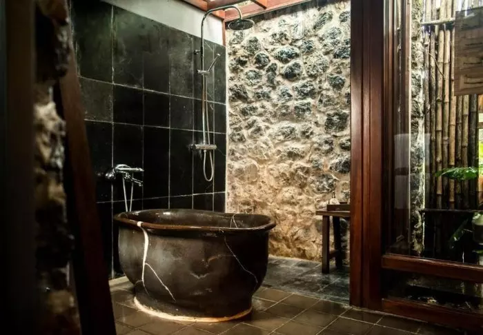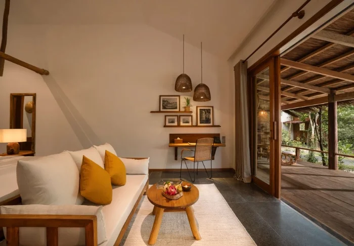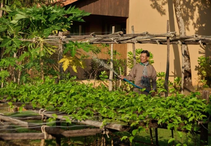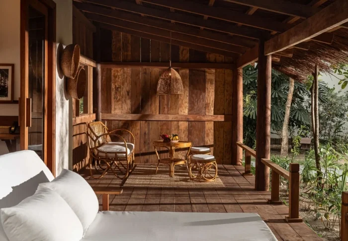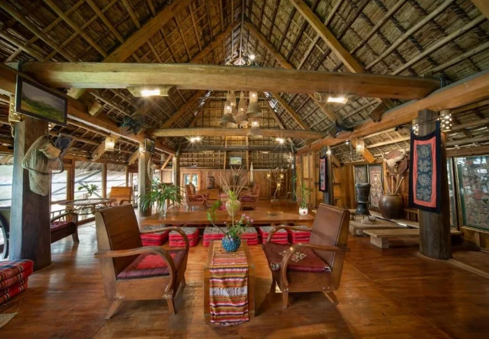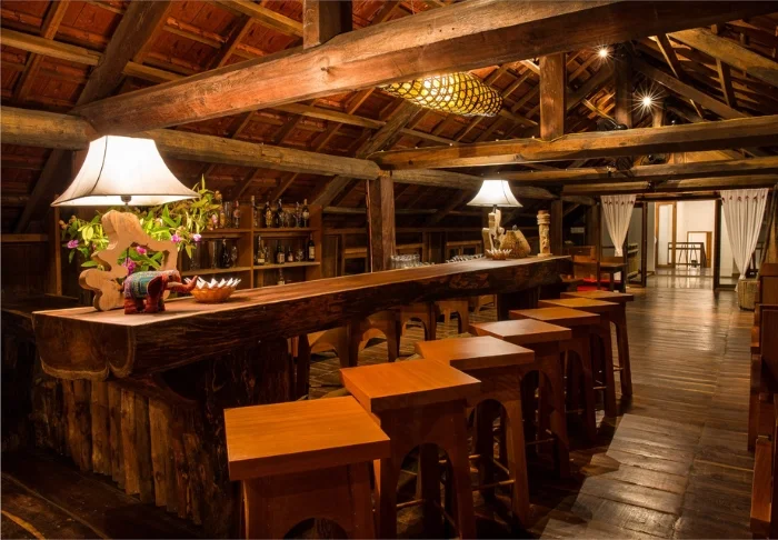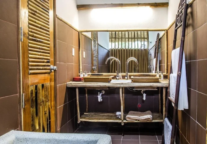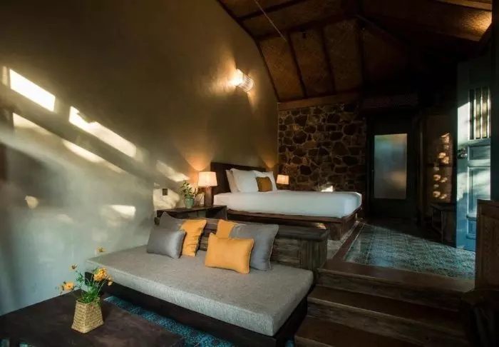 Het resort is milieuvriendelijk en gebouwd in natuurlijke en duurzame materialen. Het meeste van het interieur is gemaakt van fijn donker hout in de eigen timmerwerkplaats van het resort.