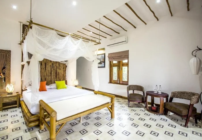 Het hotel is gebouwd in moderne Vietnamese koloniale stijl en beschikt over slechts 37 kamers, wat zorgt voor een intieme en ontspannen sfeer. U verblijft standaard in een superior kamer, die licht en smaakvol is ingericht met houten elementen, grote ramen en subtiele details geïnspireerd op de kenmerkende uitstraling van Hoi An. Uw kamer is voorzien van airconditioning, wifi, een minibar, waterkoker, kluisje en TV. De badkamer beschikt over een regendouche en gratis toiletartikelen.
