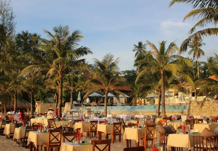 Wanneer de trek toeslaat, kunt u terecht in het hotelrestaurant The Spice House. Hier staan Vietnamese specialiteiten en mediterrane gerechten op het menu, allemaal bereid met verse ingrediënten. Sluit uw dag ’s avonds ontspannen af bij de sfeervolle strandbar The Malabar, waar u kunt genieten van cocktails, bier en klassieke drankjes terwijl het geluid van de golven op de achtergrond klinkt.