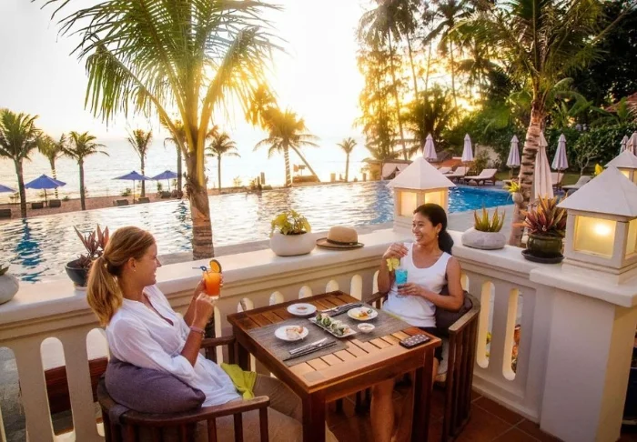 Het hoofdrestaurant van het resort, Le Café, biedt een heerlijk ontbijtbuffet en à-la-carte voor lunch en diner. Er worden zowel internationale als echte Vietnamese gerechten geserveerd. Le Salon in de lobby serveert thee, koffie, taart en ook wijn en cocktails. De poolbar, La Piscine, biedt verfrissende drankjes en snacks, terwijl u in de strandbar kunt genieten van een lichte lunch en een drankje in de late namiddag, en u uitzicht heeft over het strand en de kabbelende golven.