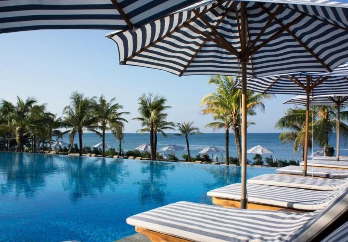 Blue Ocean heeft een eigen strand met ligstoelen en parasols, vanwaar je kunt genieten van het uitzicht op de turquoise zee. Er zijn nogal wat golven in Mui Ne, dus als je niet graag in zee zwemt als die niet rustig is, heeft het resort gelukkig een uitnodigend zwembad waar je een verfrissende duik kunt nemen en kunt ontspannen met een goed boek.