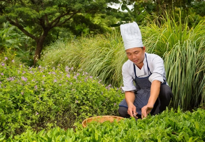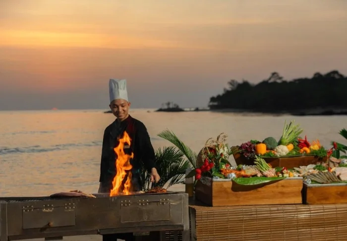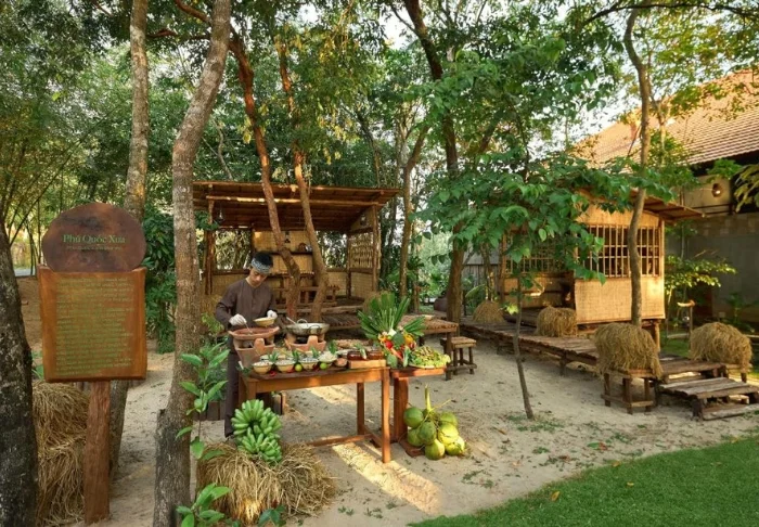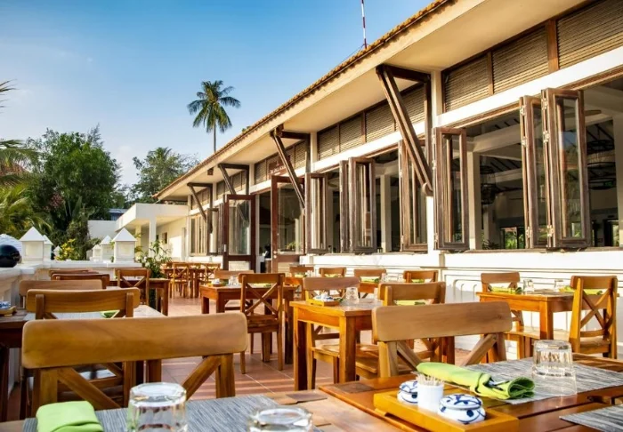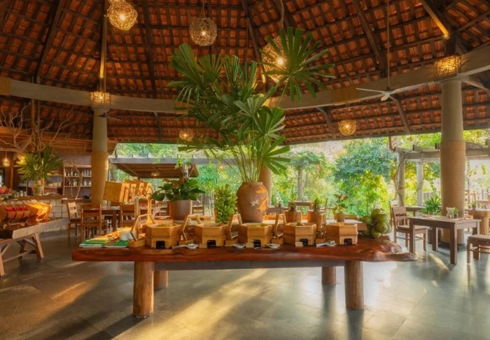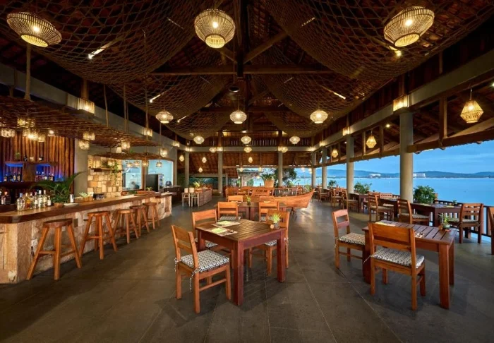 Vanuit het restaurant en de bar is er uitzicht op het zwembad en het strand. Het restaurant biedt zowel Vietnamese als westerse gerechten – alles met een lokale en duurzame inslag. Er is voor elk wat wils – ook voor vegetariërs en veganisten.