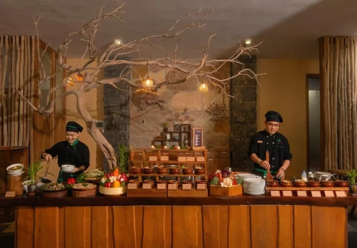 In het restaurant van het hotel zorgen de bekwame chef-koks ervoor dat er altijd een ruime keuze aan lekkere gerechten met lokale ingrediënten is. Hier worden zowel Aziatische als westerse gerechten geserveerd en heeft u uitzicht op de glooiende bergen van Sapa.