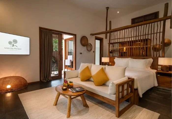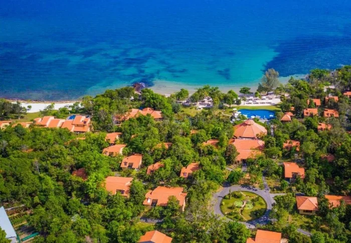 Green Bay Phu Quoc Resort &Spa ligt direct aan een van de beste stranden van Phu Quoc, aan de westkant van het eiland. Het resort ligt in een schilderachtige omgeving met veel groen, mooie tuinen, moestuinen, een vijver, palmbomen, schaduwrijke bomen en een panoramisch uitzicht op de Golf van Thailand.