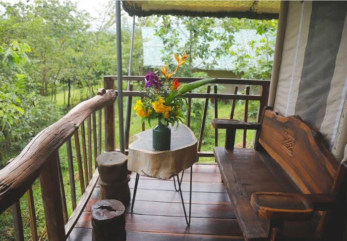 U overnacht in een van de luxueuze tenten die speciaal voor de tropen zijn ontworpen. De tenten zijn op een houten verhoging geplaatst en bieden een mooi uitzicht. De tenten zijn met een netwerk van loopbruggen met het hoofdgebouw van de lodge verbonden. Alle tenten hebben een tweepersoonsbed of twee eenpersoonsbedden, eigen badkamer, minibar, ventilator of airconditioning. Voor de tent is er een heerlijk balkon met een paar stoelen waar u van de zonsopgang bij de rivier kunt genieten en de geluiden van de gibbons (aapjes) kunt horen.