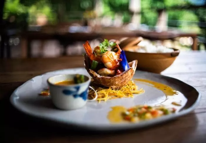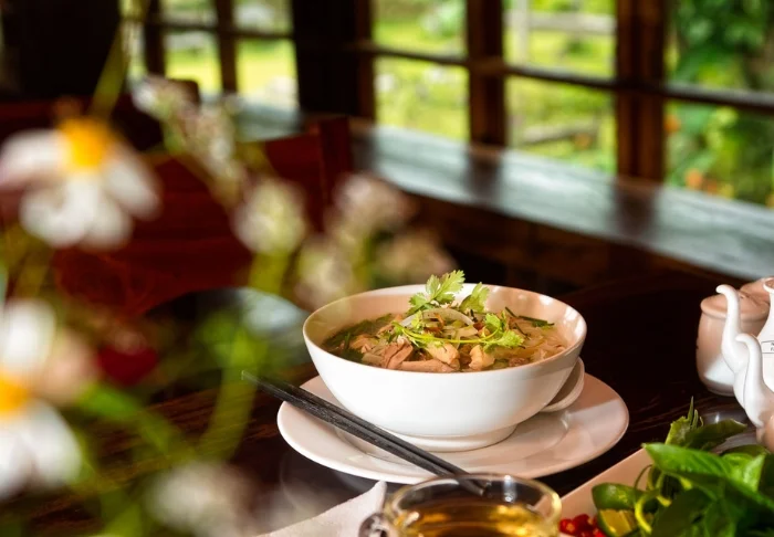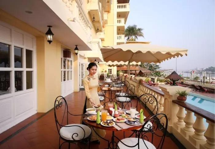 Het restaurant, Le Comptoir de Marthe et Edouard, is vernoemd naar de grootouders van de eigenaar en serveert een heerlijke mix van de Vietnamese en Franse keuken. Chef-kok Vo Quoc Thach staat aan het roer in de keuken en creëert een menu waarin lokale ingrediënten prachtig samengaan met klassieke Franse kooktechnieken. Al deze smaakvolle gerechten kunt u proeven op het terras, met uitzicht op de rivier terwijl de zon ondergaat.