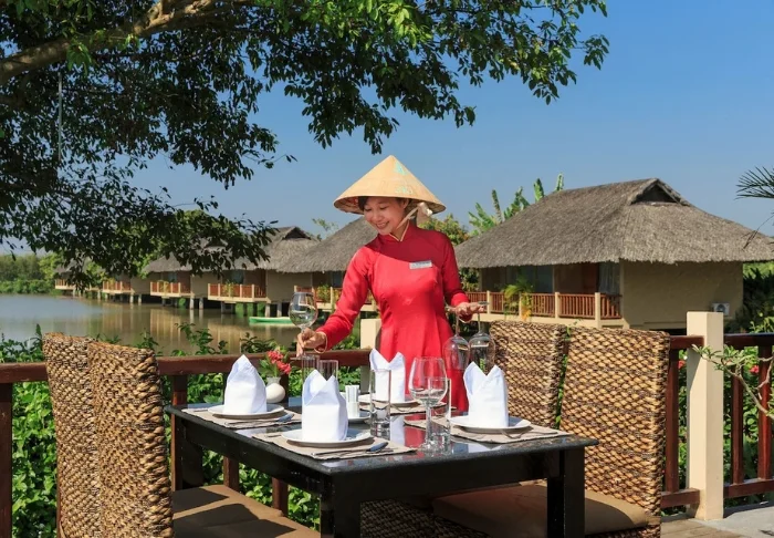 Het restaurant van het hotel, Mekong Medley Restaurant, serveert dagelijks een uitgebreid ontbijtbuffet, lunch en diner, aangevuld met een à-la-cartemenu waarop zowel klassieke gerechten uit de Mekongdelta als internationale favorieten staan. Een bijzonder hoogtepunt van het resort is de eigen European Bakery & Dessert Corner, waar iedere dag versgebakken brood, Franse taartjes en verrukkelijke desserts worden bereid.