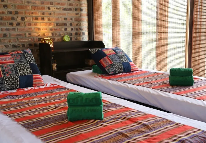 De lodge beschikt over sfeervolle bungalows die zijn gebouwd met natuurlijke materialen en perfect opgaan in de serene omgeving. U verblijft in een deluxe kamer te midden van de weelderige tuinen van de lodge, vol bloeiende planten en fruitbomen. De kamer is ongeveer 40 m² groot en ingericht met handgemaakte meubels van natuurlijke materialen, waardoor een rustige en authentieke sfeer ontstaat. U heeft de keuze uit een tweepersoonsbed of twee eenpersoonsbedden, airconditioning, een minibar, wifi en een waterkoker voor een kopje thee of koffie. De ruime badkamer is voorzien van moderne gemakken en heeft een binnen- of buitendouche. Vanaf uw eigen terras geniet u van het uitzicht op de rustgevende tuin en de ontspannen sfeer.