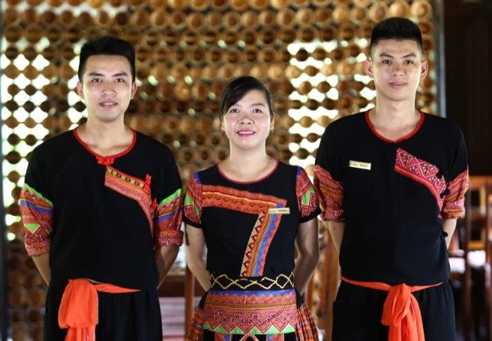 De gebouwen van het resort zijn twee verdiepingen hoog, met gele gevels, daken met rode pannen en details van donker hout, geïnspireerd op de traditionele architectuur van Noord-Vietnam. Emeralda heeft bovendien een kleine tentoonstelling die een inkijkje biedt in de Vietnamese cultuur en geschiedenis, wat de karakteristieke sfeer van het resort versterkt.