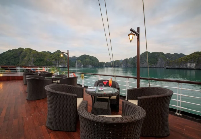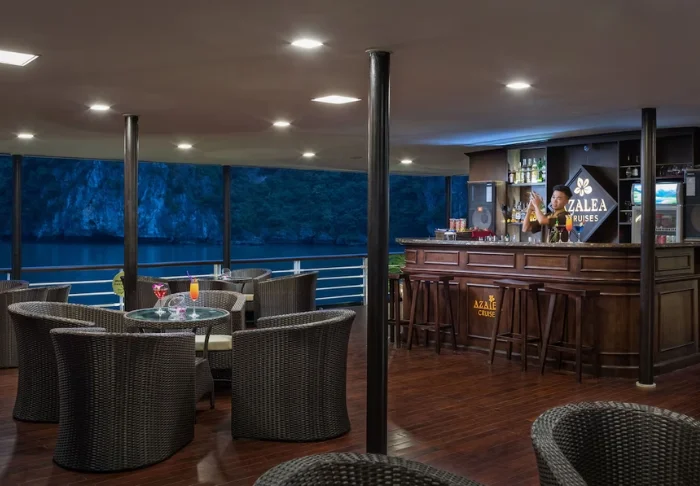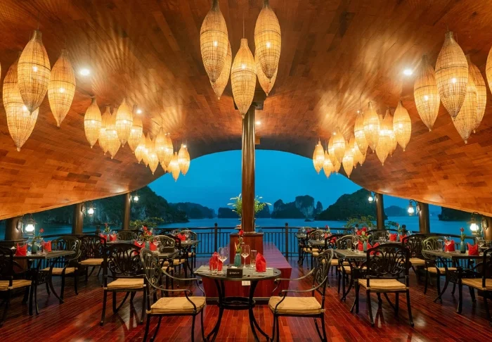 In het restaurant geniet u van een gevarieerd aanbod aan zowel Vietnamese als internationale gerechten, altijd bereid met hoogwaardige ingrediënten. De sfeer is stijlvol en dineren op het dek, terwijl de zon ondergaat, zal ongetwijfeld tot de hoogtepunten van uw reis behoren.
