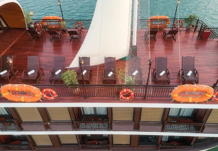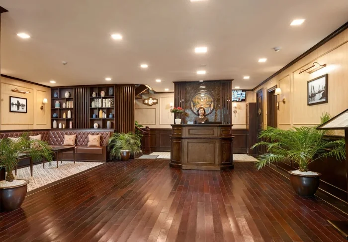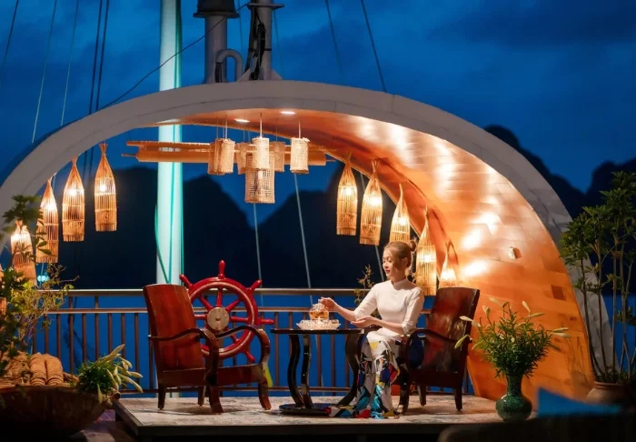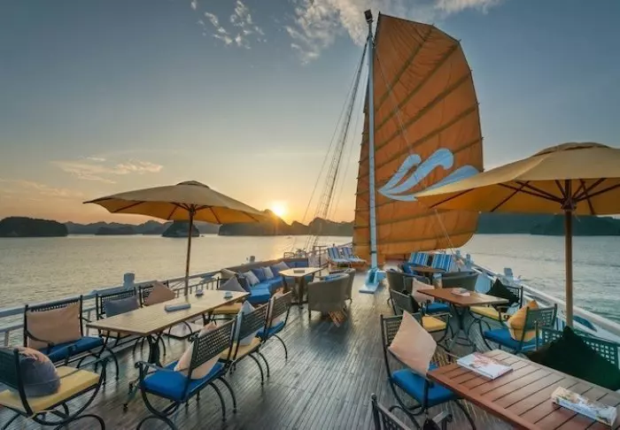 Indochina Sails tilt de cruise-ervaring op de Ha Long baai naar een hoger niveau. Aan boord van dit elegante houten schip, met slechts 23 hutten, proeft u direct een werkelijk exclusieve sfeer waarin perfecte service, oog voor detail en een warme ambiance naadloos samenkomen. Al decennialang behoort dit schip tot de meest gewaardeerde schepen van de baai, en het staat bekend om zijn uitzonderlijke kwaliteit.